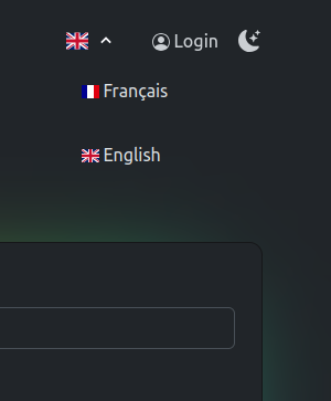 Ce premier écran vous permet de valider votre inscription dans le système, vous avez le choix entre Anglais et Français.