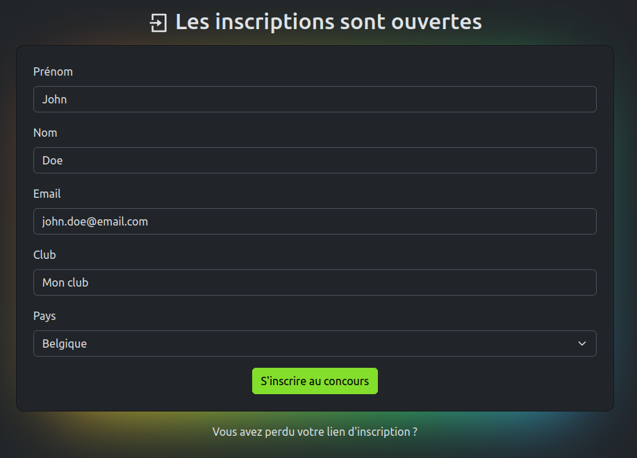 Remarque : Une adresse email n’est utilisable que pour une seule inscription.