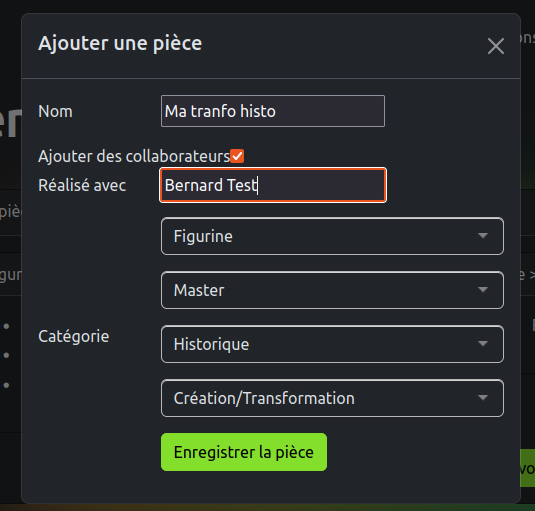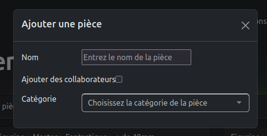 Pour ajouter une pièce il vous suffit simplement de cliquer sur le bouton associé.